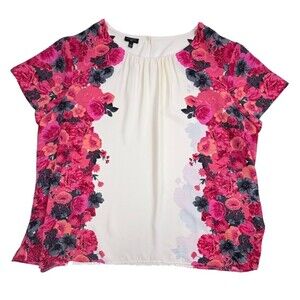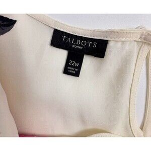 Talbots Floral Garden Border SS Plus Top Ivory Pink Romantic Flowy Feminine 22W