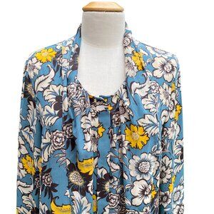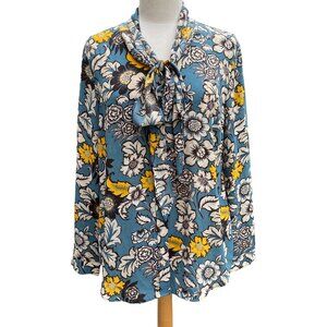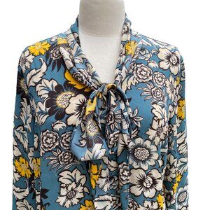 Talbots Floral Neck Tie Blouse Sz M Secretary Librarian Chic Academia Office