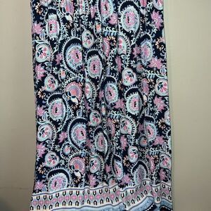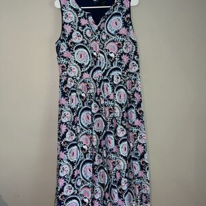 Talbots Floral Paisley Dress Blue Sleeveless Lightweight Split V-Neck Size 10P