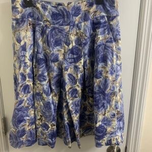 Talbots Floral Pleated A-Line Knee Length Skirt w/Pockets sz 10.