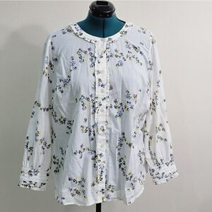 Talbots Floral Popover Top Button Down Shirt Pleated Trim Petite Plus Size 2Xp