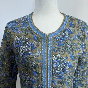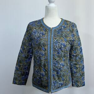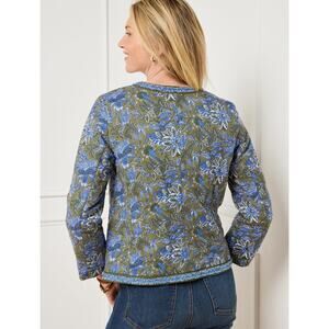 Talbots Floral Quilted Jacket Sage Leaf Lakeshore Blue Small NEW