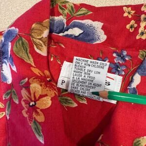 Talbots Floral Red Shirt Dress SZ 8 Linen Cotton Button Down Cottagecore Fall