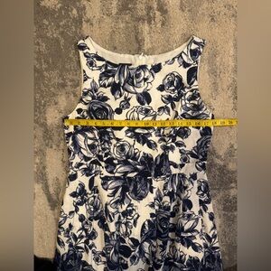 Elegant sleeveless dress featuring a striking black floral pattern on a white background. Perfect for any occasion.
