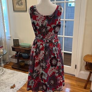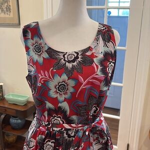 Talbot’s Floral Sleeveless Dress - Red and Blue. Tie at waist. Size 6