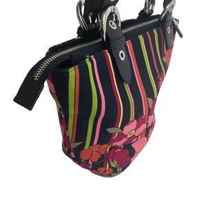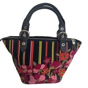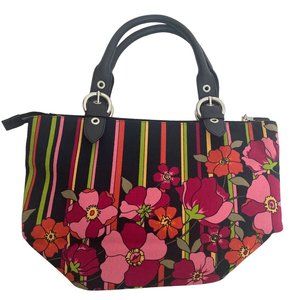 Talbots Floral Stripe Satchel - Black and Pink