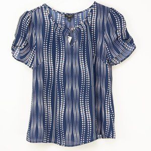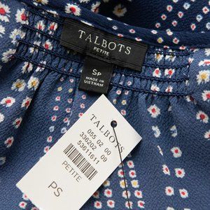 Talbots Floral Stripe Top Short Sleeve Blouse Shirt Blue Petite Small NWT