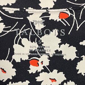 This Talbots floral wrap dress in a nylon and spandex blend offers a comfortable and flattering fit with its elegant mid-length design. The black background with white and Orange floral pattern adds a sophisticated touch. Ideal for office settings or formal events, providing a polished and stylish appearance.