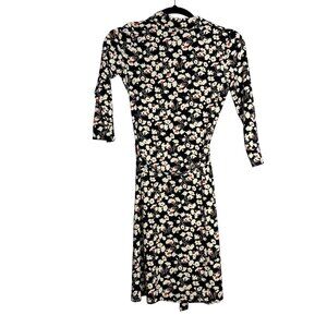 Talbots Floral Wrap A-Line Dress VN784 black white orange