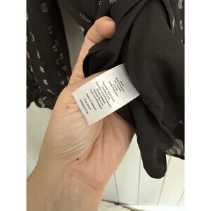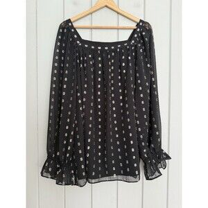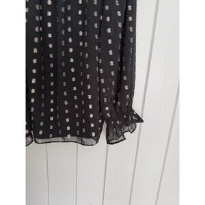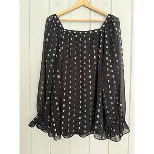 Talbots Flounce Sleeve Metallic Clip Dot Lined Blouse 2X Black Silver