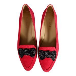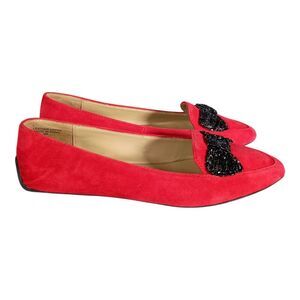 Talbots Francesca Driving Shoes Flats Pointed Toe Suede Red Embellished Bow 6 M