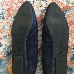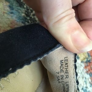 Chic and comfortable suede leather flat with a rubber sole. These flats feel buttery soft on your feet and the scalloped edge is extra special. This style retails for over $100 new. Some normal wear, but still lots of life left in these shoes!