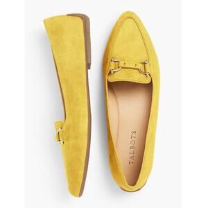 TALBOTS Francesca Kid Suede Driving Moccasins yellow size 7.5 slip on shoes preppy