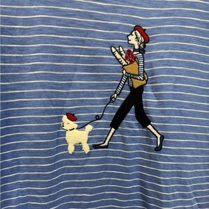 Talbots French Poodle Shopper Knit Blue Stripe 3/4 Sleeve Pullover Travel