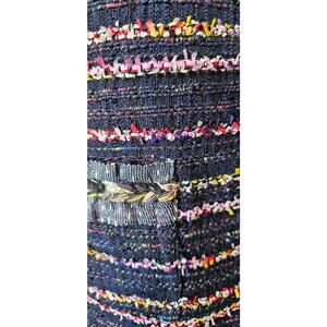 • Multicolored, braided tweed stripes add modern fashion dimension to this stylish structured jacket.