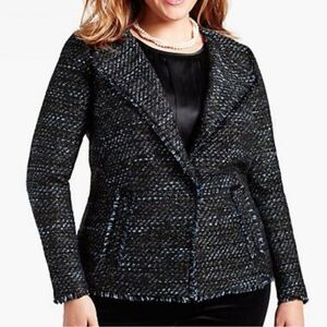 Talbots Fringed Vienna Metallic Tweed Blazer In Black And Blue Size 14
