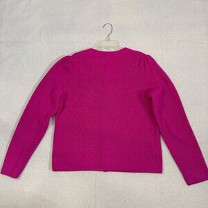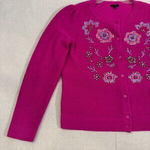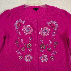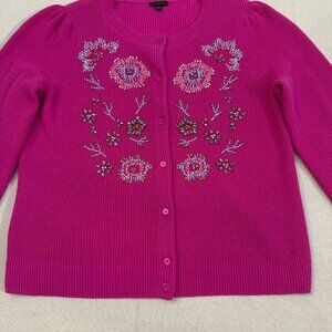 Talbots Fuchsia Pink Floral Beaded Button-Up Long Sleeve Cardigan Sweater L