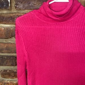 Talbots Fuchsia Pink Ribbed Knit Pullover Turtleneck Sweater LP Large Petite