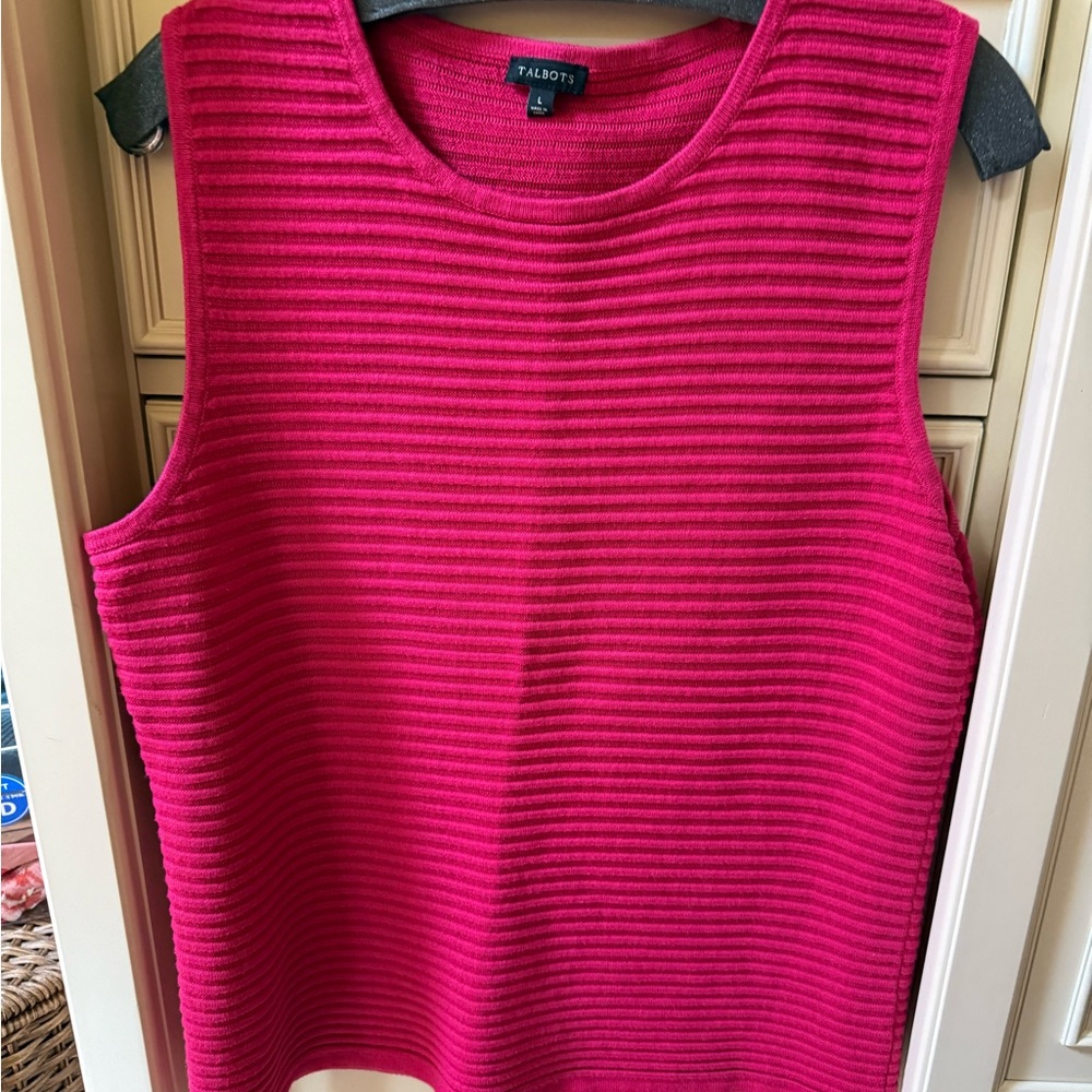 Stylish fuchsia tank top with ribbed texture. Sleeveless design for versatile wear.