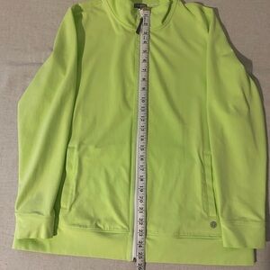 Gently used Talbots lightweight, full-zip jacket in light green. The stretchy cotton blend fabric makes it comfortable for spring or summer.