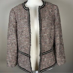 Talbots GROSGRAIN-TRIM TWEED Blazer Jacket Size 10P Petites Office Workwear