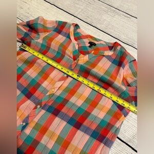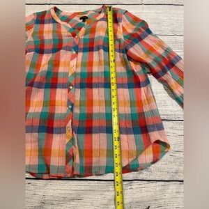 Talbots Gauzy Colorful Check Plaid Blouse Button Up Long Tab Sleeve Size Medium