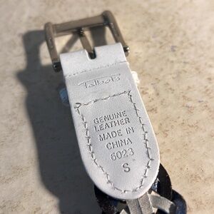 Here is a Talbots Genuine Leather Braided Belt size Small NWOT. This belt does not have belt holes, you just separate the braid to buckle it. Measures 34 inches including the buckle.