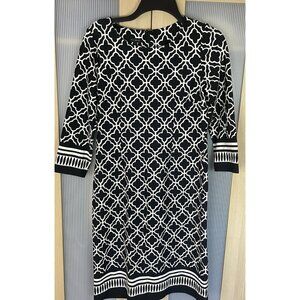 Talbots Geo Print Sheath Dress Women’s Size 14 Stretch Ponte Career Party Casual