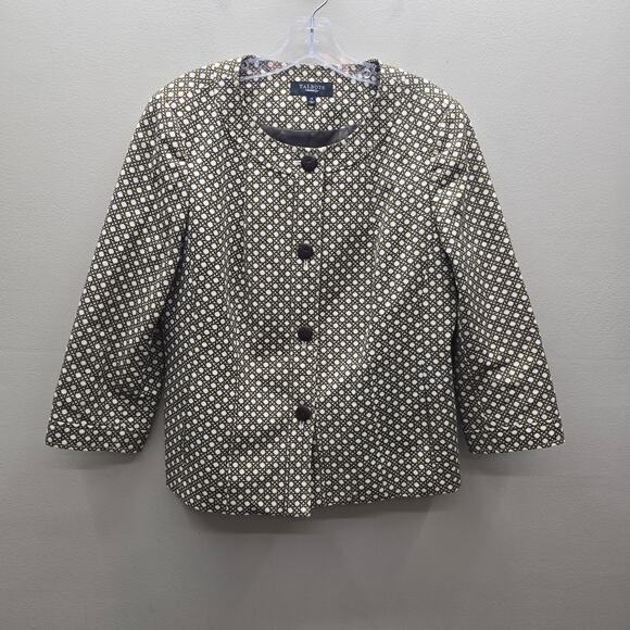 Talbots Geometric Print Button Front Swing Jacket Blazer Office Brown Cream 14