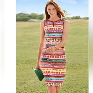 Talbots Geometric Striped Textured Sleeveless Knee-Length Sheath Dress