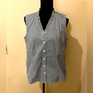 Talbots Gingham Black & White Ruffle Collar Sleeveless Button-down, size Small