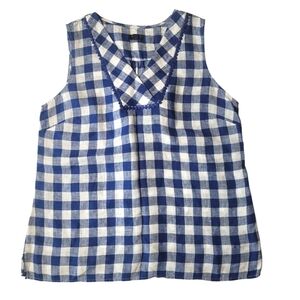 Talbots Gingham Linen Sleeveless Tank Top Medium Petite