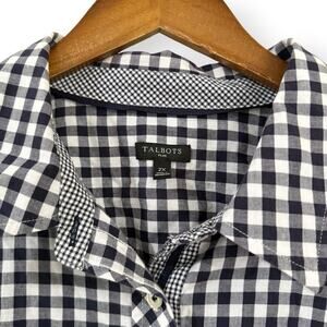 Talbots Gingham Plaid Shirt Navy Button Plus Size 2X White Check Preppy Nautical