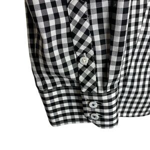 Talbots Button Up Shirt Womens 10 Non Iron Gingham Check Long Sleeve Black White