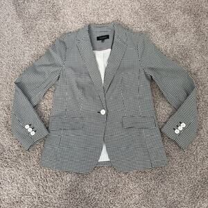 Talbots Gingham Single Button Blazer Black & White Pockets Back Pleat Lined Women's 6