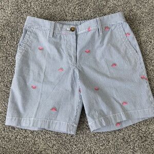 Talbots Girlfriend Chino Shorts Watermelon Print Blue White Stripes Cotton 2