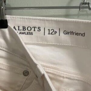 White Talbots girlfriend Jeans size 12P waist is 17" Inseam is 25.5 (approx.)