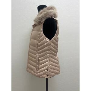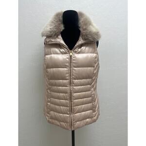 Talbots Gold Down Puffer Quilted Vest Removable Faux Fur Collar Preppy Lux Layer