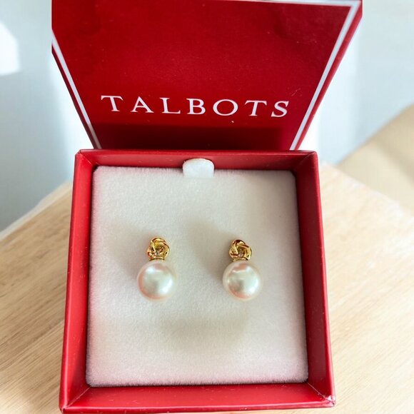 Talbots Gold Knot With Faux Pearl 5/8" Earrings-NWT