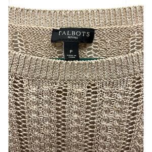 Talbots Gold Metallic Sweater, Open Weave Knit Tunic, Crew Neck, Women's Size SP