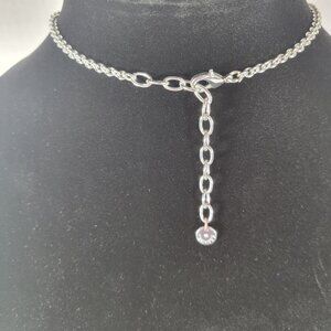 Talbots Gold & Silver Mobwife Chain Link Rhinestone Circles 17" Chocker Necklace