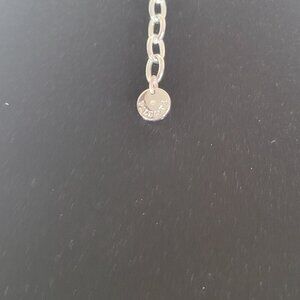 This elegant necklace combines gold and silver tones with rhinestone accents for a timeless design. The adjustable chain ensures a secure fit.