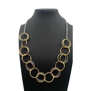 Talbots Gold & Silver Tone Interlocking Twisted & Smooth Circles Chain Necklace