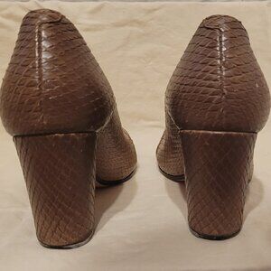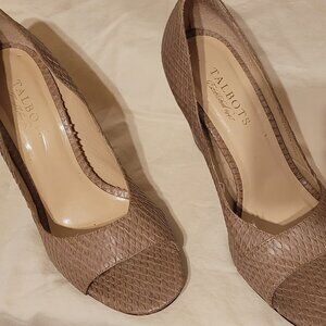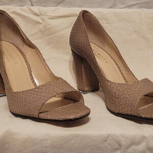 Talbots Gold Snake Skin Open Toe Leather 4 inch Heels size 7 1/2