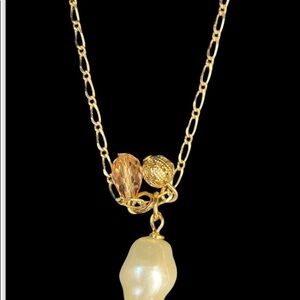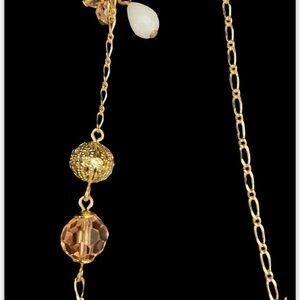 Talbots Gold Tone Double Chain Necklace w/ Crystal Pearl Gold Bead Dangles