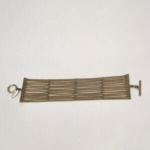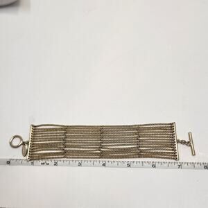 Talbots Gold Tone Multi Chain Statement Bracelet Toggle Clasp Wide Dainty Chains