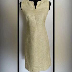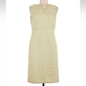 Talbots Gold Yellow Metallic Tweed Wool Blend Cocktail Shift Dress Size 4 Small