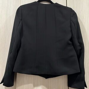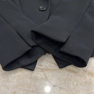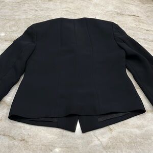 Polished perfection—Talbots Grace Fit blazer in classic black crepe stretch. Fully lined with a sharp one-button front, split cuffs, and two front slip pockets (still sewn shut).
