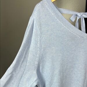 This Talbots blouse features a soft gray fabric with a relaxed fit and a stylish tie front. The 3/4 sleeves and V-neckline add a touch of elegance, making it perfect for casual outings.