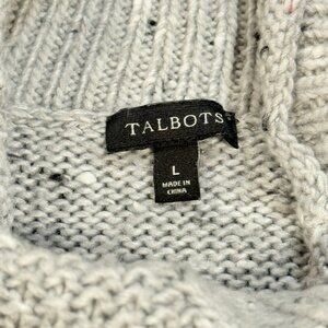 Talbots Gray Cable Knit Tweed Fleck Mock Neck Sweater Womens Size Large